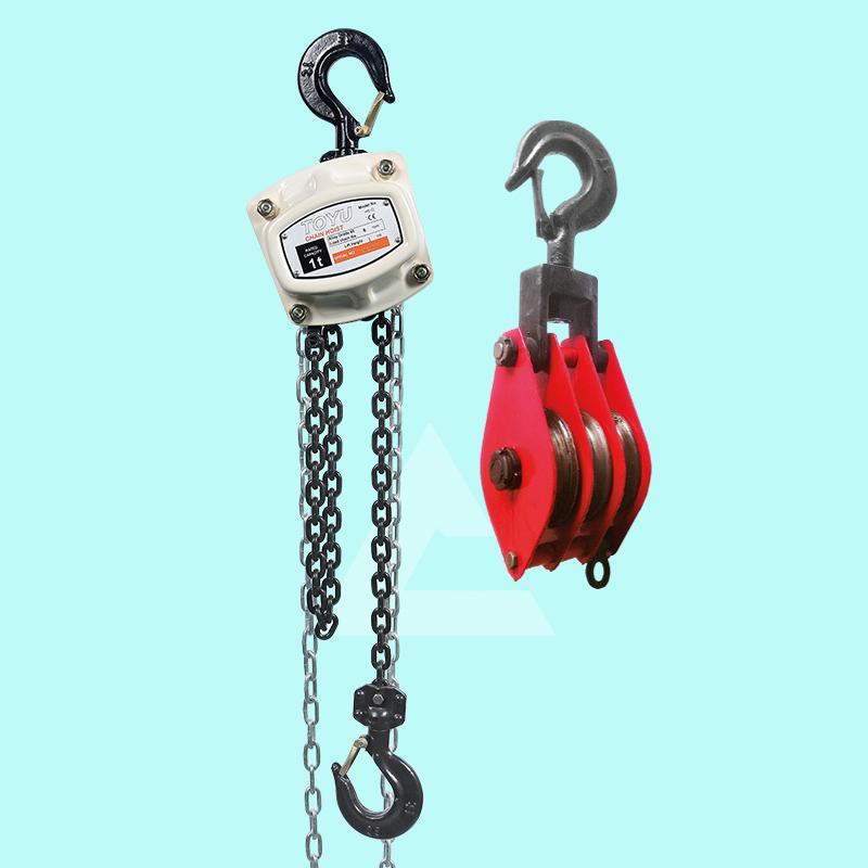 1.倒链手拉葫芦分为上吊钩和下吊钩,而起重滑轮是有一个吊钩,这样来看手动葫芦的结构是比起重滑车的复杂一些;