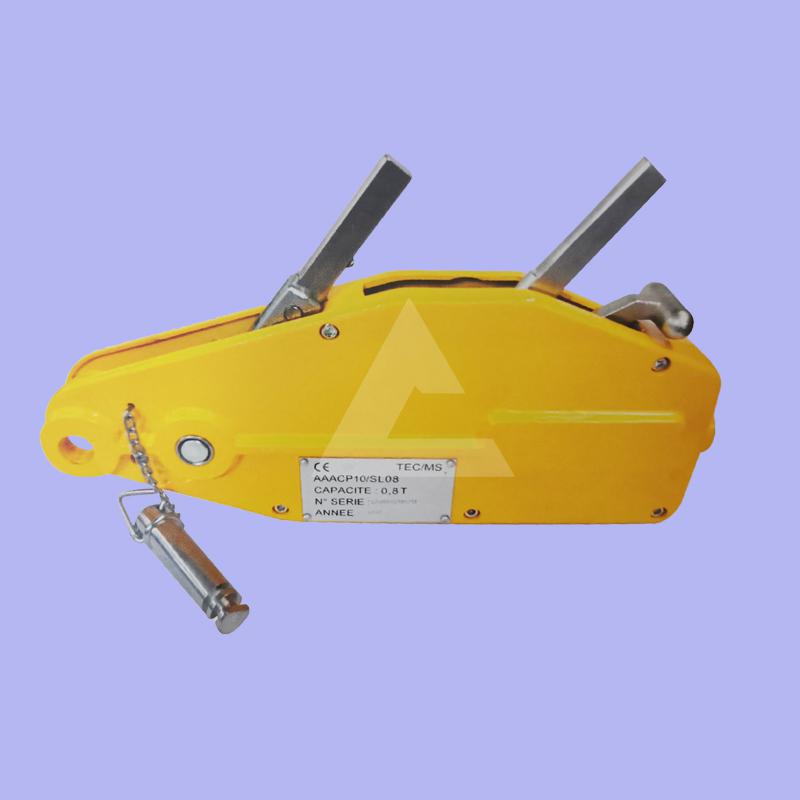 钢丝绳手扳紧线器也被成为钢丝绳手扳牵引机,是现在广泛应用的牵引工具,钢丝绳是这个手扳葫芦的重要部件,有的用户不正确使用设备,超载使用也就是超过了钢丝绳能够承受的额定载荷,使得钢丝绳承受不住,造成断裂?;褂幸恢智榭瞿鼐褪歉炙可锏搅吮ǚ媳曜?,客户还在继续使用,也会容易造成钢丝绳断裂的情况发生。牵引工具厂家撼马提醒您在使用设备的时候,要按照设备上规定的额定载重去使用,不要超载使用。