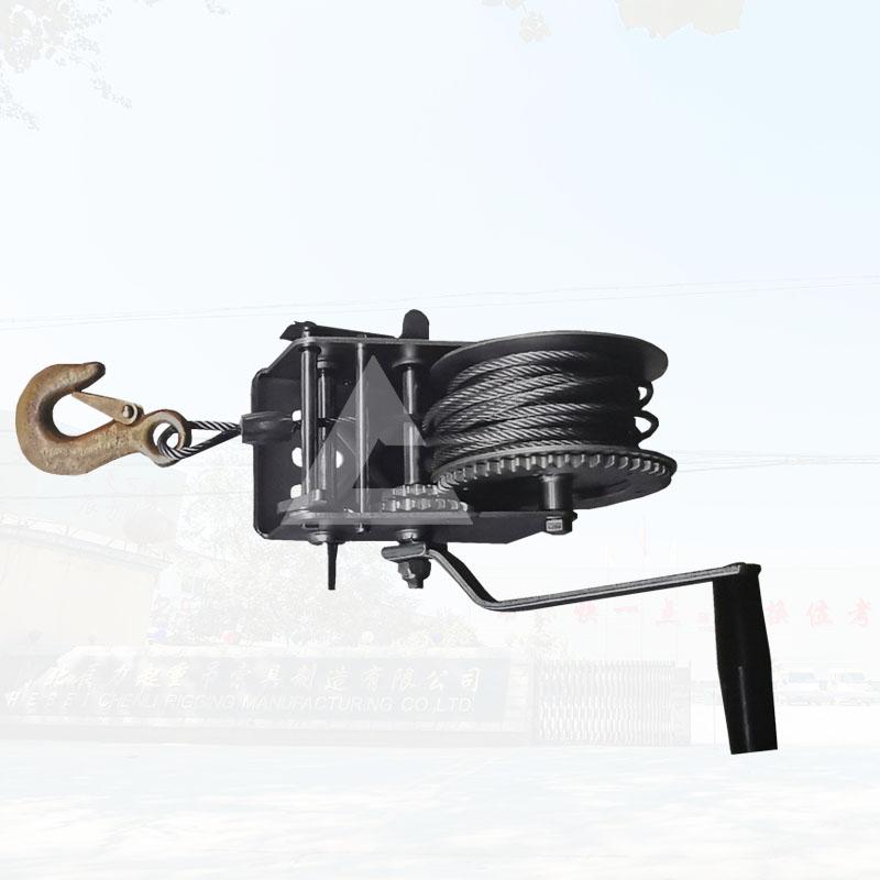 一般下水道、矿井这样的环境空间比较小,人们不能使用大型的机械进行工作,这个时候可以选择牵引工具手动绞盘和救援三脚架配合来完成工作??梢韵劝芽笥檬忠〗食蛋沧暗骄仍羌苌?,然后工人穿上防坠器,佩戴好后,通过上面工人不断的摇动手动绞车的手柄,来慢慢的下降,使得进入井下工作的工人,能够平安的降落到井下。起重搬运机械厂家撼马为满足不同客户的需求,生产了各种型号的手摇绞盘,方便客户使用。